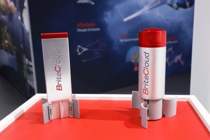 BriteCloud is developed by Leonardo’s facilities in Luton (UK). Following the successful tests of the 55 mm BriteCloud round, called BriteCloud 55, Leonardo developed an even smaller variant called BriteCloud 218 which can fit the 2”x1”x8” US-made chaff/flare dispensers.