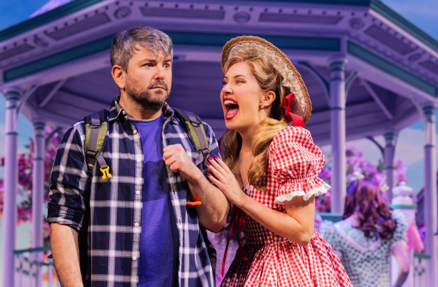 Of course, if it feels like Schmigadoon! contains many more quotes and references than that, that is hardly a mistake. As the show’s book writer-composer-lyricist Cinco Paul showed me in a recent interview at the piano, the songs for his score—much of it originally concocted for the Apple+ TV series he co-created with Ken Daurio and wrote with a roomful of writers—are deftly gene-spliced from a wide variety of classic songbooks, just as the show’s script is a topsy-turvy flipbook of musical-theatre tropes.
