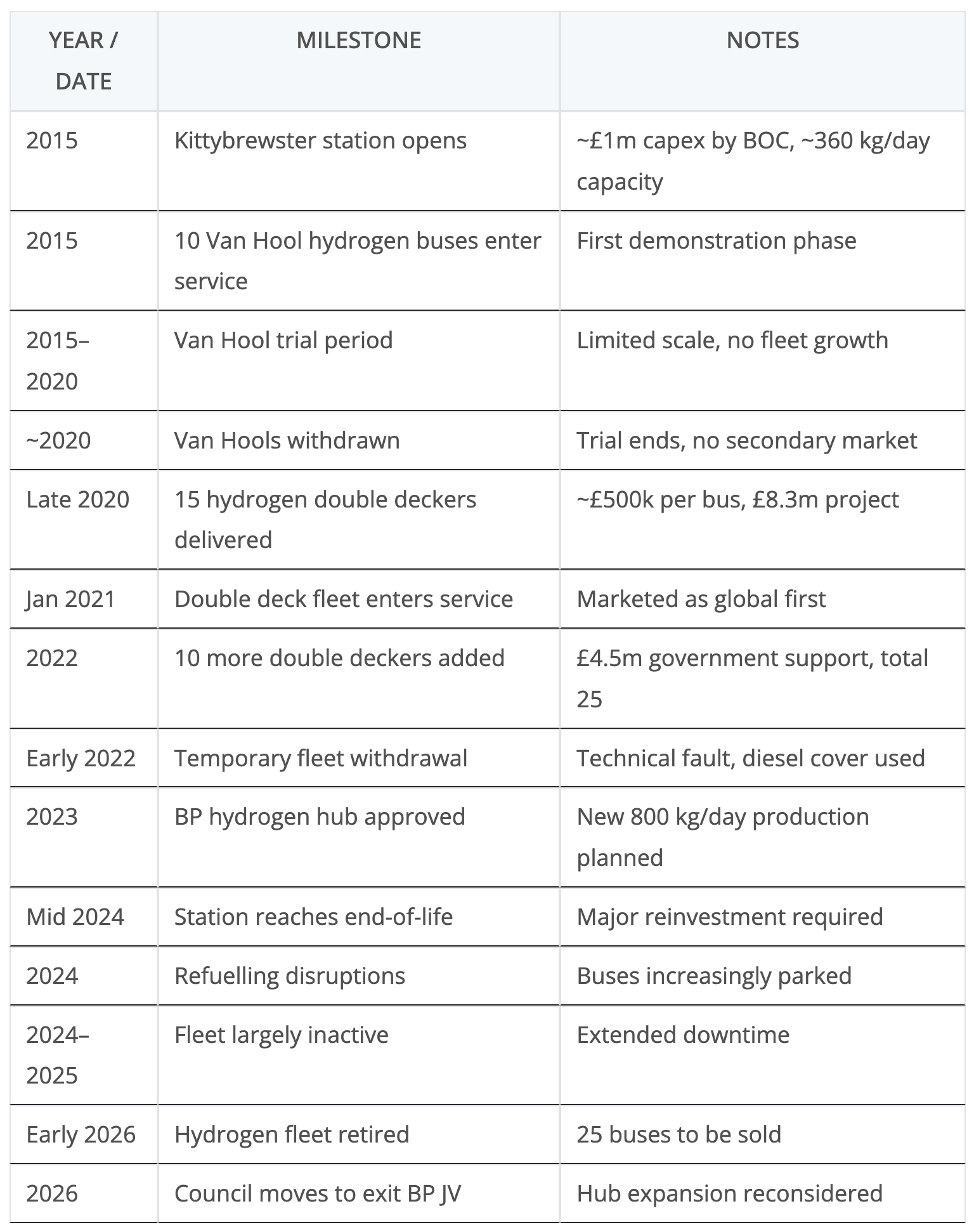Aberdeen had access to these numbers before the buses were purchased. They had already trialed hydrogen buses and refueled them. The cost structure of hydrogen refuelling stations was not hidden. O&M burdens well above 20% of capex per year were visible in California and other markets, in addition to their own experience. Multiple hydrogen bus trials had already struggled or been curtailed globally. The choice to proceed was a deliberate policy decision. The only unambiguous positive development in this story is the decision to retire the hydrogen bus fleet and pivot to battery electric. It is appropriate to acknowledge the correction, not the initial error.