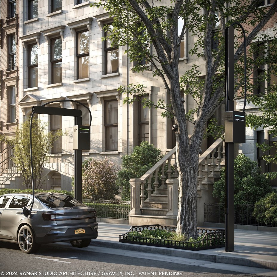 Here’s a little more on the design from Gravity: “Gravity’s engineers in collaboration with globally renowned design firm, Rangr Studio, took up the challenge of solving all the frictions in curbside charging today. Each Gravity universal DEAP Tree has a hinged swing arm holding a cable that pivots down when charging begins, allowing it to reach the port of every make and model. When charging is completed, the arm raises automatically and the EV connector seamlessly latches back onto the pole and out of sight. The device is operable with minimal effort and avoids the long cables (or requirement for a user-supplied cable) common to other systems—preventing tripping hazards, obstacles to accessibility and potential vandalism.”