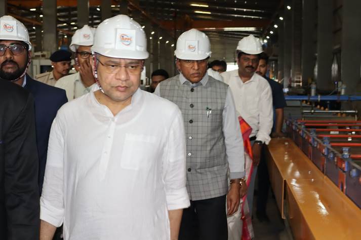 BHAVNAGAR : Union Minister for Railways Shri Ashwini Vaishnaw; Minister of Labour & Employment, Youth Affairs & Sports Dr. Mansukhbhai Mandaviya; and Minister of State for Consumer Affairs, Food & Public Distribution Smt. Nimuben Bambhaniya visited the container manufacturing company Aawadkrupa Plastomech Pvt. Ltd. located in Bhavnagar district.