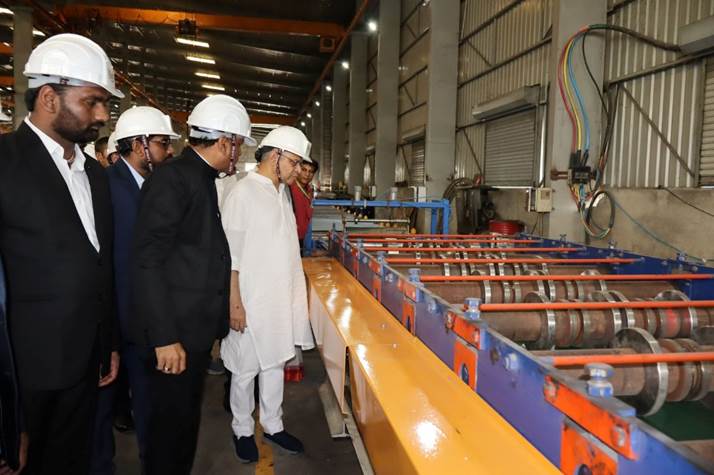 The Union Minister gathered detailed information about the containers being produced at Aawadkrupa Plastomech Pvt. Ltd., located on the Bhavnagar–Rajkot Road, and provided necessary suggestions and guidance.