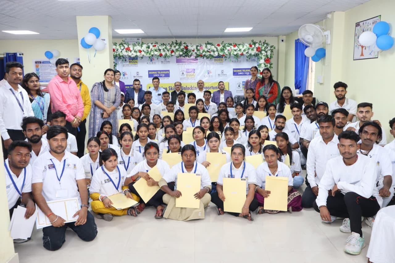 The ceremony celebrated the successful completion of training by students enrolled in IT-CCE (Customer Care Executive), Beautician, and Fitter (Leveling and Balancing) trades, aimed at empowering youth from project-affected areas.