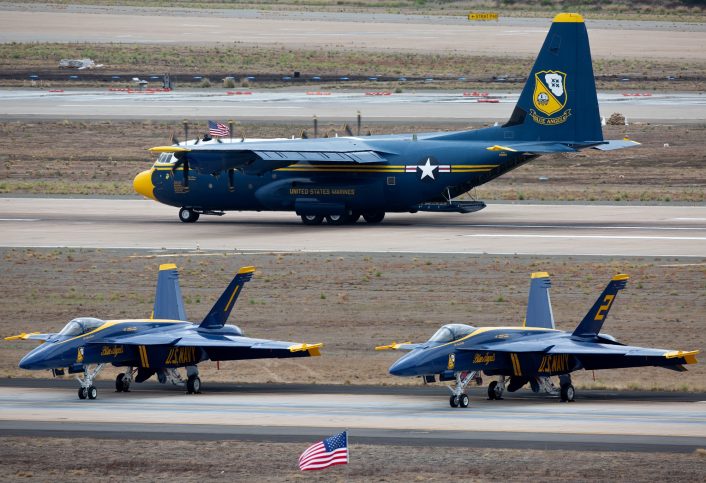 As we reported in the past, the current support aircraft of the Blue Angels is not new to the UK’s skies. In fact, the aircraft is the former Royal Air Force Hercules C5 ZH885 which was refurbished and repainted by Marshalls Aerospace, before flying to the team’s home base at NAS Pensacola, Florida.