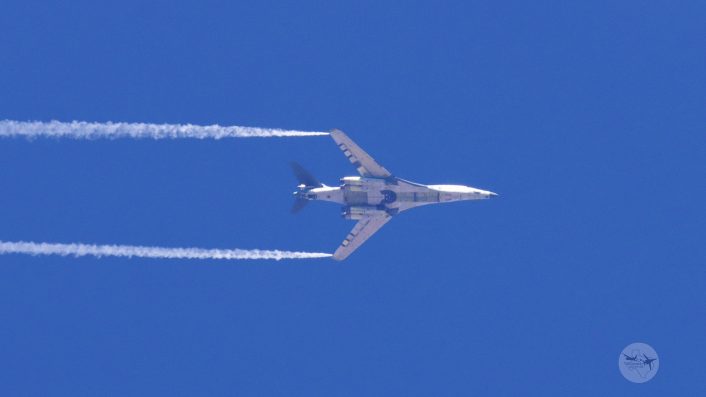 The B-1B is the Lancer 86-0115 “Rage” regenerated from the Boneyard to be returned to active service, during a post-depot functional check flight.