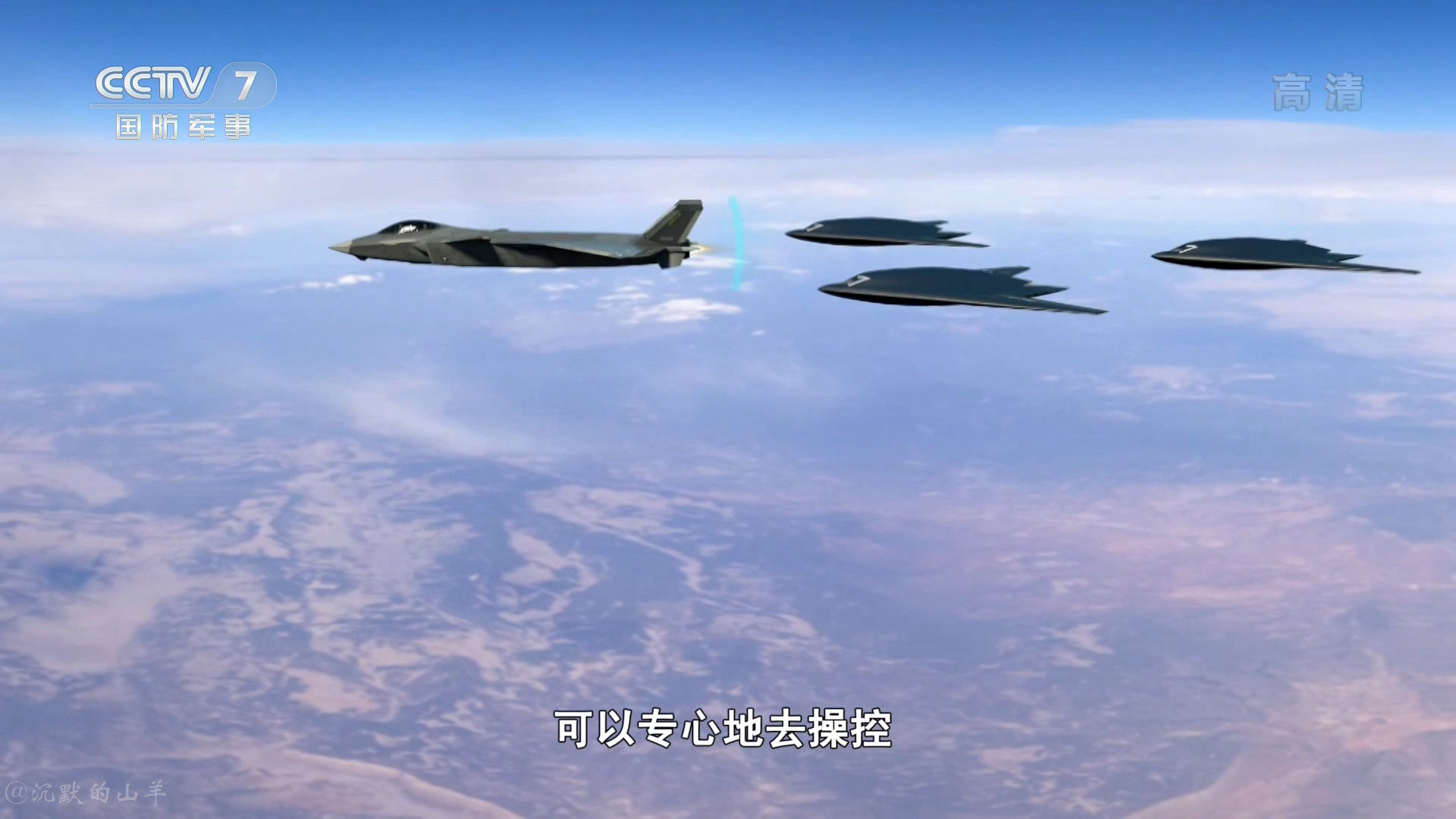 A 2022 screencap from CCTV-7 showing a J-20S controlling three ‘loyal wingman’ GJ-11s. The new video that surfaced today shows that single-seater J-20s can control UCAVs in a similar fashion. (Image credit: CCTV7)