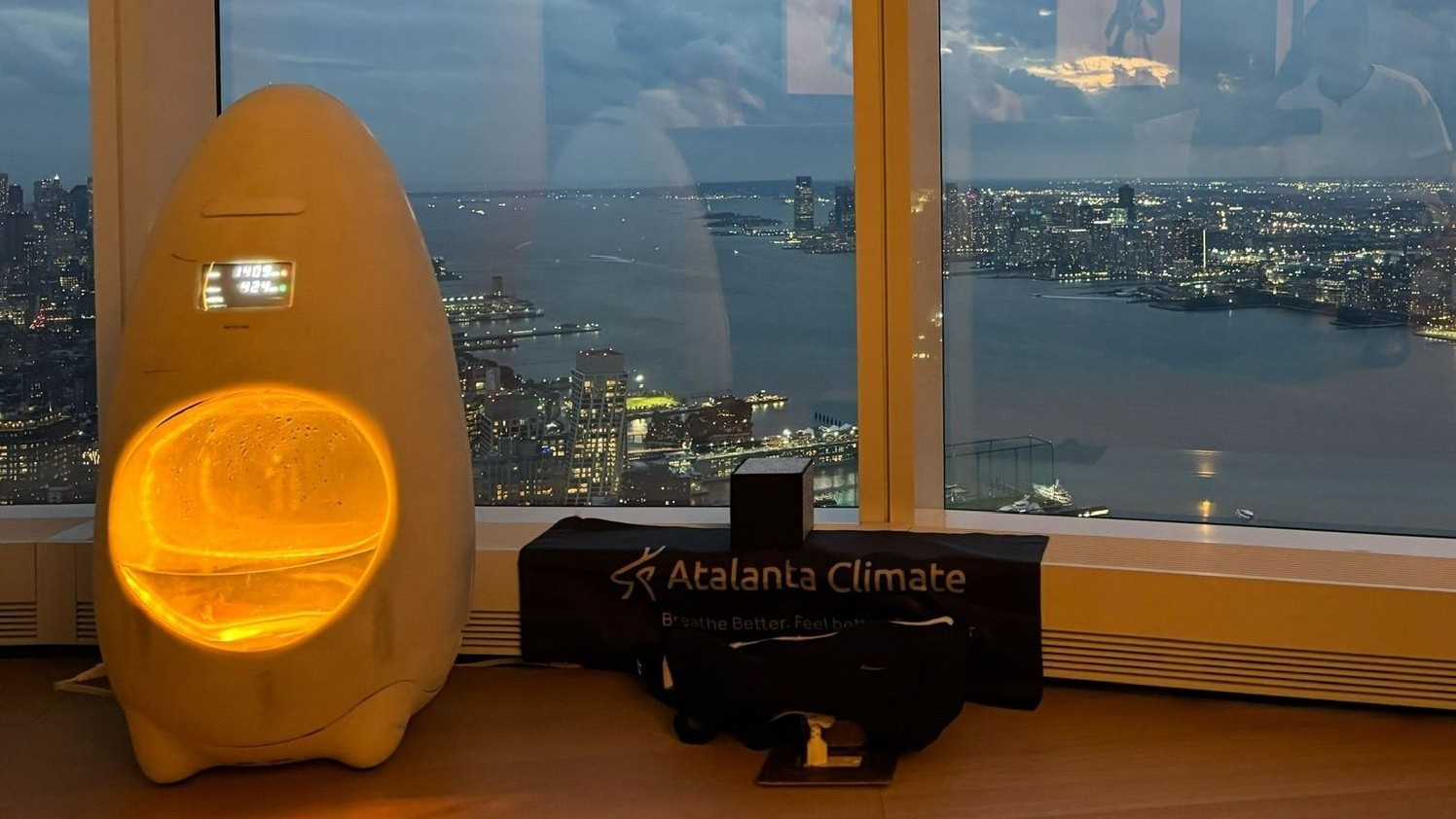 Vancouver-based Atalanta Climate showcased indoor carbon capture. Indoor CO2 emissions can be multiple times those outdoors, impacting focus, productivity, sleep, and overall health. Atalanta uses a compact system with an aesthetically pleasing egg shape to both purify the air and remove carbon dioxide, at a claimed rate equivalent to 30 trees planted in a room. The higher the carbon concentration is in a room, the more efficient the conversion. The system uses gypsum-based cartridges and a chemical reaction to convert CO2 into carbonates of calcium collected in a water reservoir. Those carbonates are mildly alkaline but can be disposed of safely, while being potentially beneficial in some circumstances, such as addressing acidic soil.