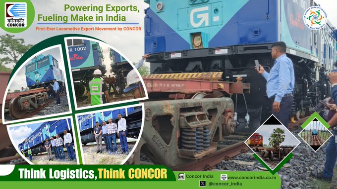 NEW DELHI : Container Corporation of India Ltd. (CONCOR) for the first time on Friday (27/06/2025), has commenced the movement of locomotive engines for export from Paterhi Station to Mundra Port for onward international shipment, informs a communique.