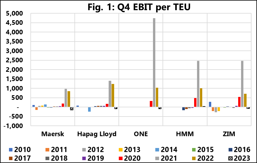 COPENHAGEN : Following Sea-Intelligence‘s previous announcement on 21 March, which provided insights into the fiscal year 2023 results, the data analysis firm now delves into the operating profit specifically for the fourth quarter of the last year.