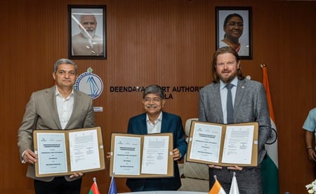The MoU was formally signed by Shri Sushil Kumar Singh, Chairman of Deendayal Port Authority, Mr. Rizwan Soomar, CEO & Managing Director, Middle East, North Africa, India Subcontinent, DP World, and Mr. Przemek (Ben) Paczek, CEO of Nevomo Group BV.