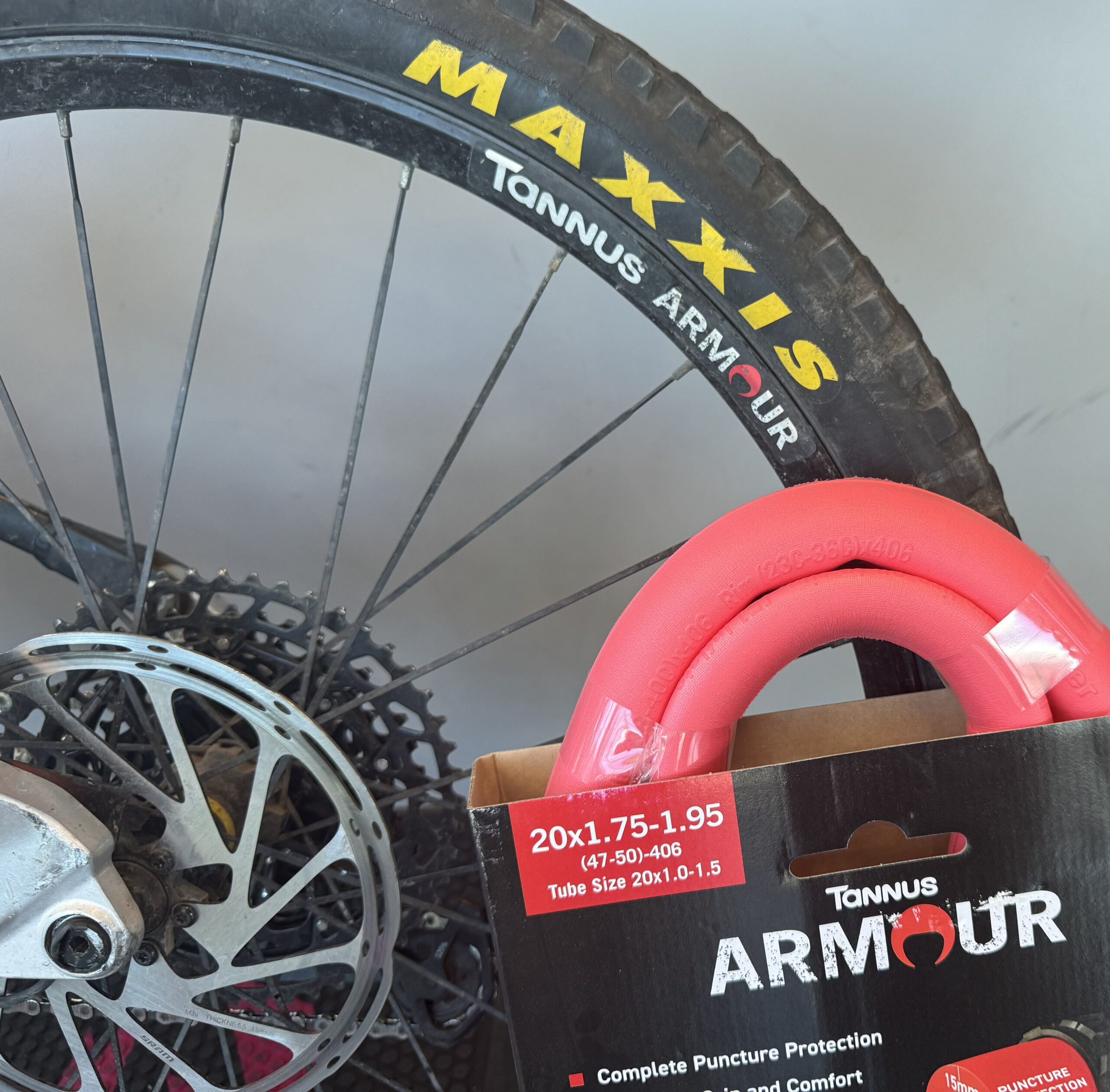 To wrap up, here’s a tip of advice. You are 10 miles out on a country road and you have a flat tire. Flats are one of the biggest downsides to bike riding. Most road bike riders carry an innertube, tire tools, a wrench, and a CO2 cartridge for tire inflation. I can change a tube in my garage, but doing it on the road is an entirely different thing. For a flat mountain bike tire, I will ride on the flat or walk a couple miles. Farther than that, I call my wife for rescue. Here in Utah, flats from thorns are a serious problem. I joke that the thorns here were personally designed by God to go through bike tires. I’ve discovered Styrofoam Tannus Armour brand inserts (see photo below) that give another 3/8” protection for the tube and virtually prevent all thorn flats. Another option is tubeless tires. They won’t prevent flats, but are much easier to repair with a little tire sealant.