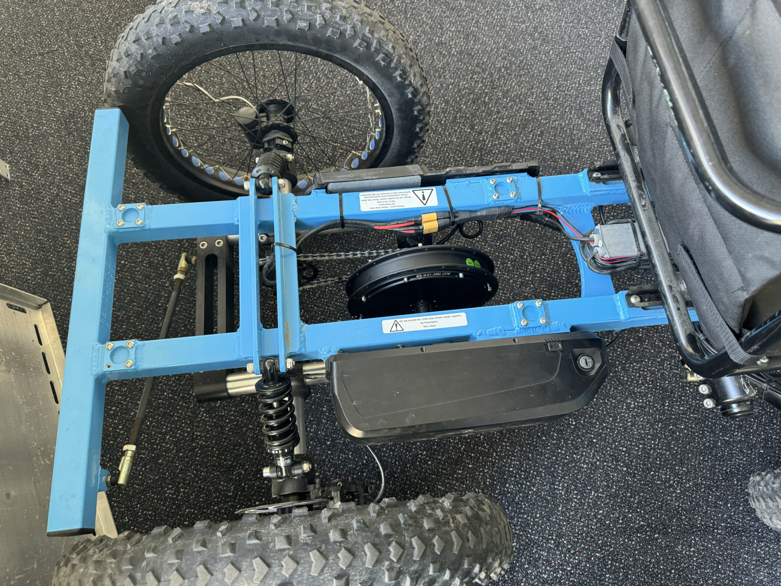 Figure 9: Drive unit and suspension. Not A Wheelchair. Orem, Utah. April 23, 2024. Fritz Hasler photo.