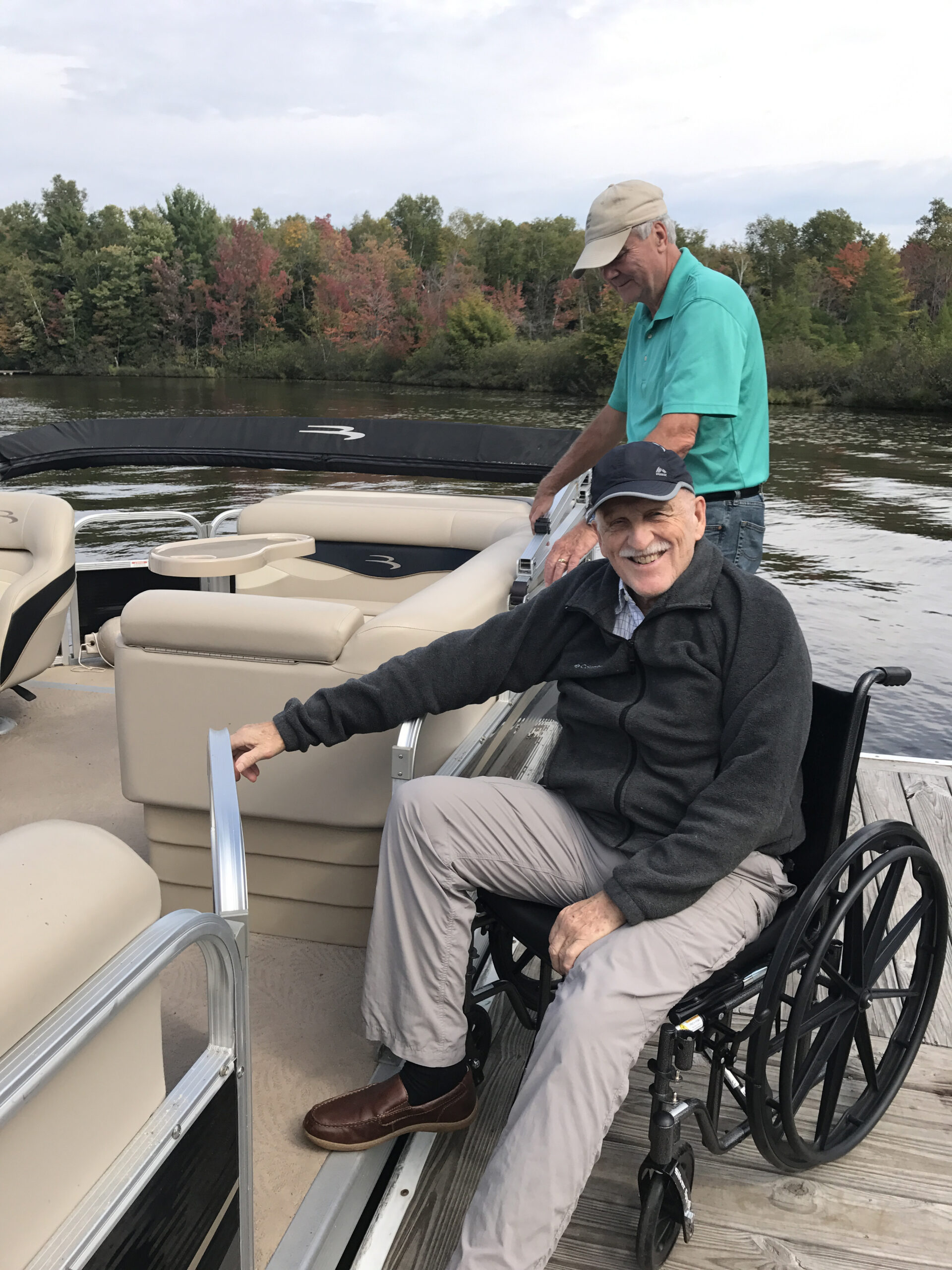 Figure 7: The author and a friend boarding a float boat. Three Lakes, Wisconsin. September 6, 2017. Mary Hasler photo.
