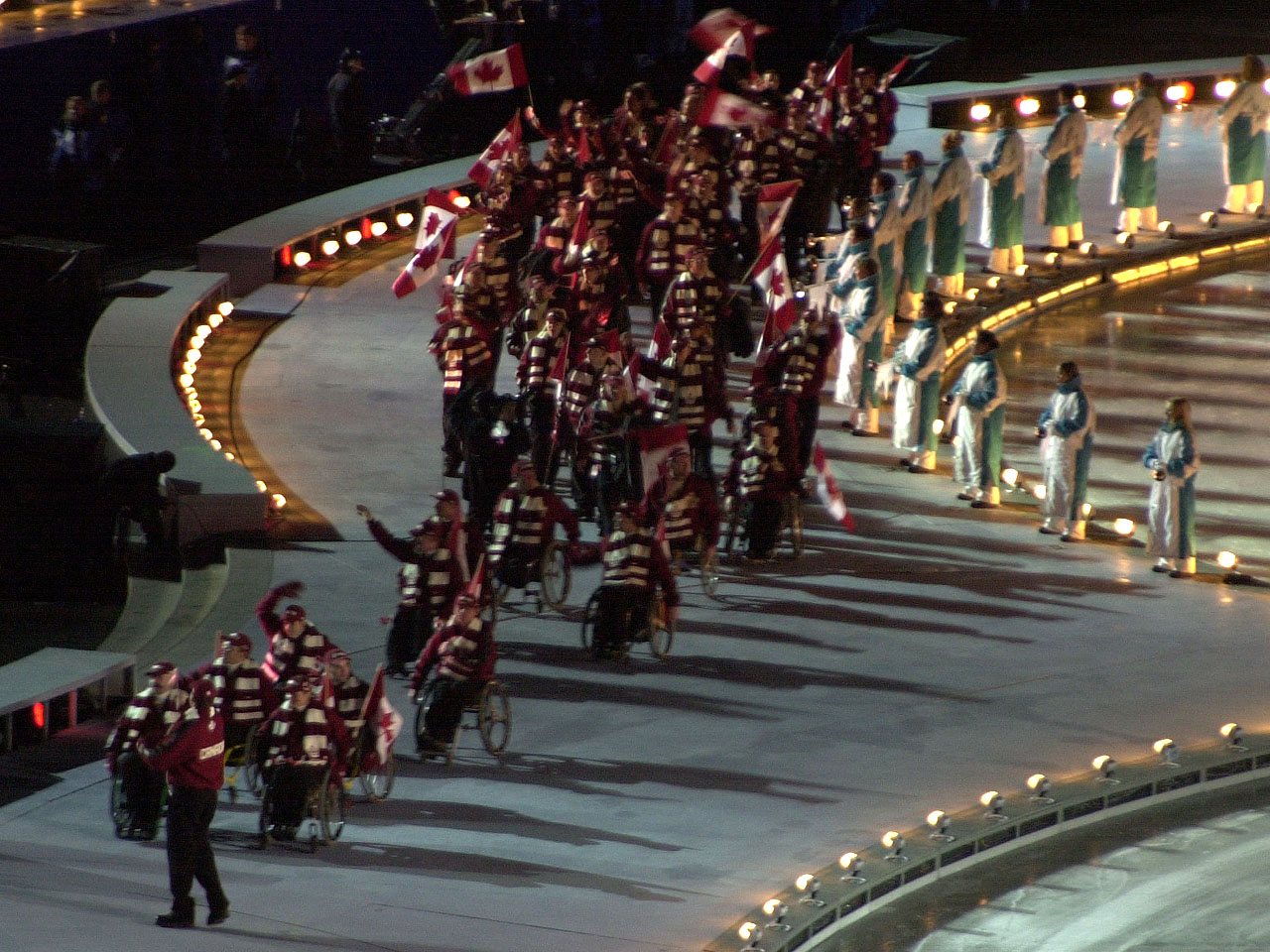 Figure 8: Canadian Olympics Team at the Opening Ceremonies. Salt Lake City Winter Olympics at Rice Eckels Stadium. February 6, 2002. Photo by Fritz Hasler.
