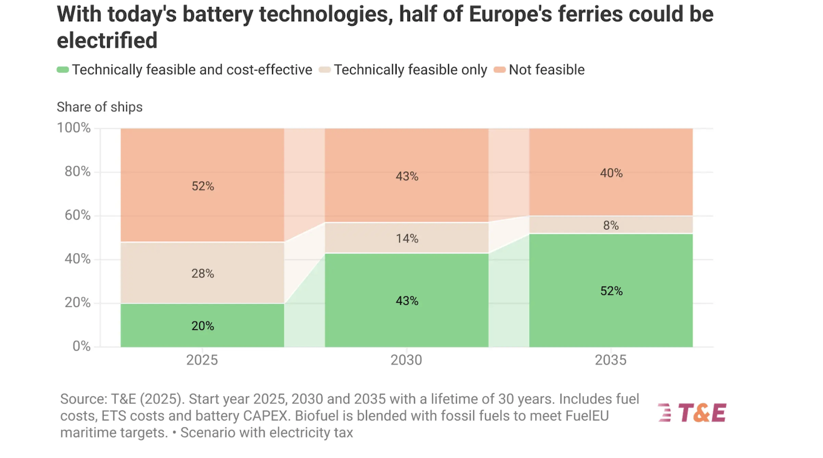 • More than half of Europe’s ferries could be electric and cheaper to run by 2035