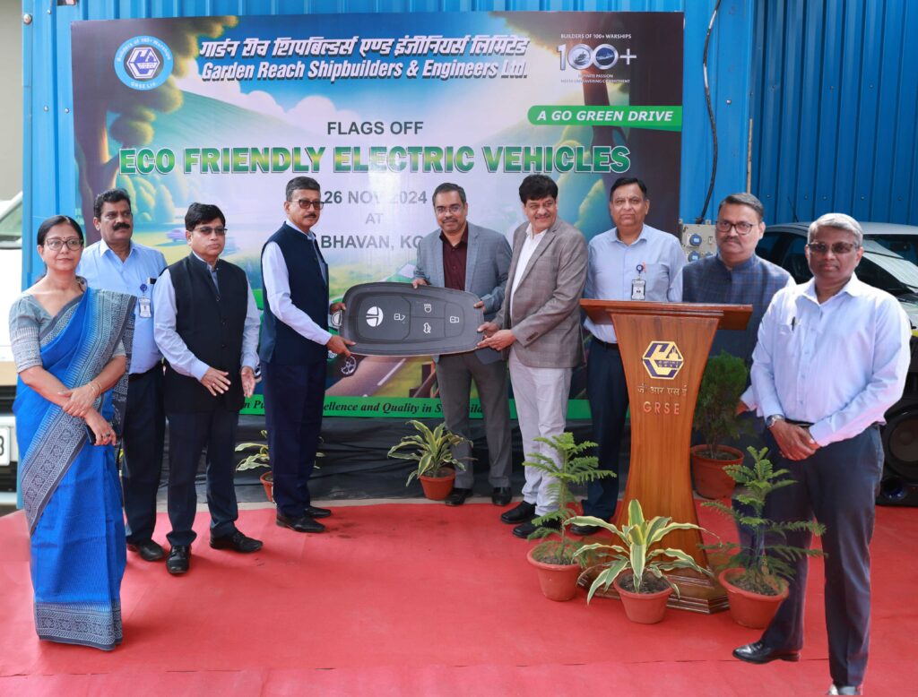As part of its commitment to promoting sustainable practices and reducing carbon emissions, Garden Reach Shipbuilders and Engineers Ltd. (GRSE), a Schedule A Defence PSU and a leading warship-building company, has inducted five additional electric vehicles (EVs). This milestone further reinforces GRSE’s vision of fostering a cleaner and greener future for India.
