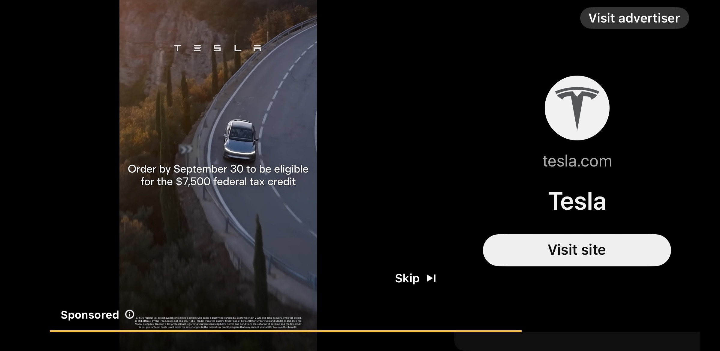 Screenshot of Tesla YouTube ad.