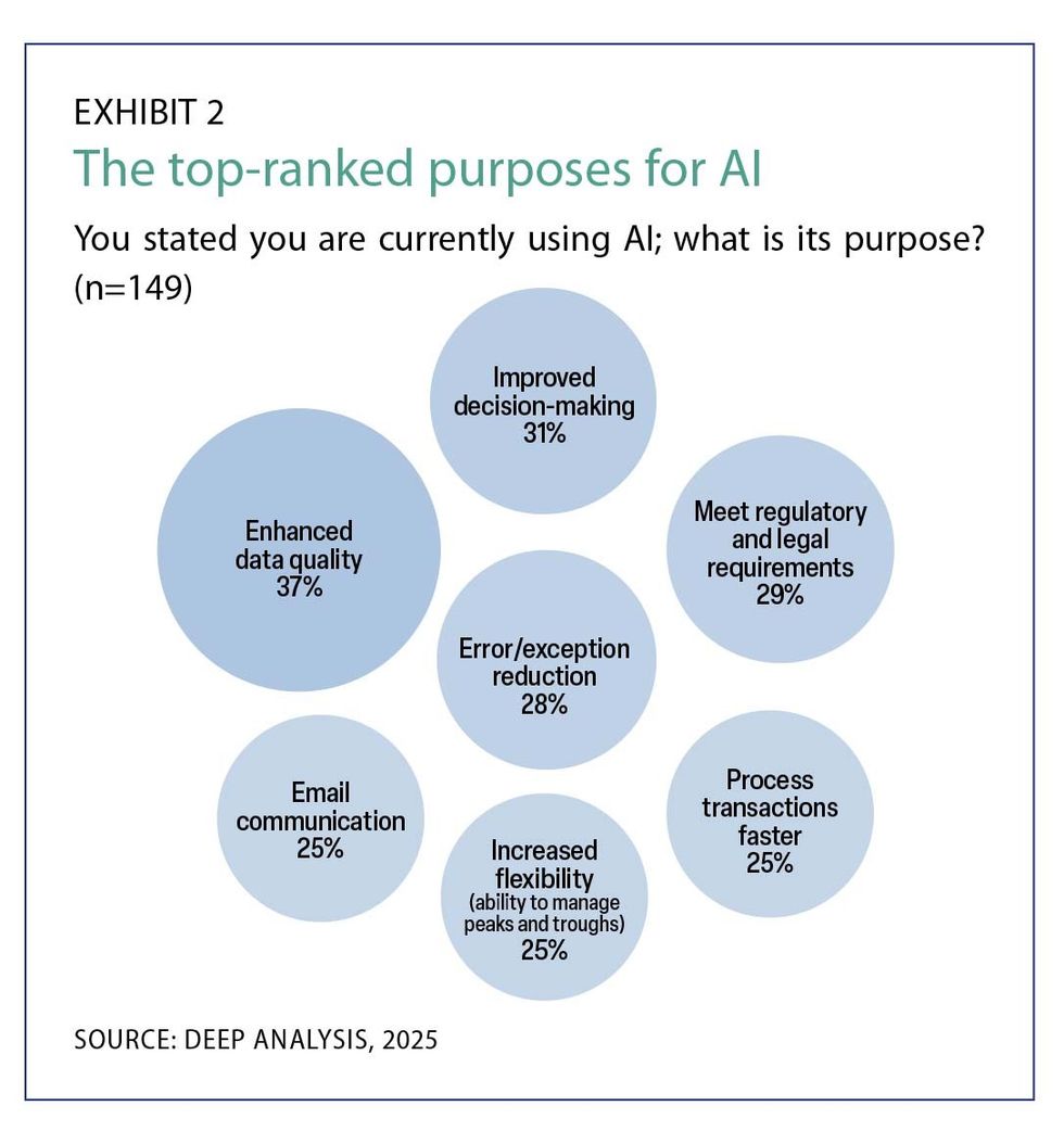 Despite the clear potential of AI, significant barriers to adoption remain. The survey respondents reported several concerns about implementing AI for back-office processes (see Exhibit 3). The most common concerns include: