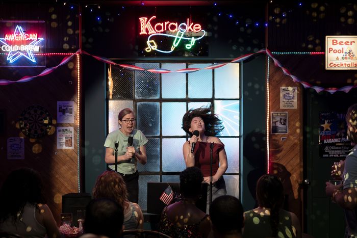 Before karaoke, Briones proposed we meet up for hot pot at Shabu-Tatsu in the East Village and showed up with a bag of thrifted clothes in hand before happily getting to work offering advice on the menu. Briones lived in the neighborhood the last time she was in New York, during a run in Hadestown in 2024, and is enjoying checking in on her old haunts. Later this evening, she has to slip on her heels, slap on makeup, and get to the premiere of a play at the Public Theater nearby. “You know where I just realized we should have done this interview?” she tells me. “Marie’s Crisis.” Once, after losing out on a job, she went to the piano bar and sang her heart out — “Just being in a sea of older gay men screaming Cabaret, it was the best, most healing feeling in the world.”