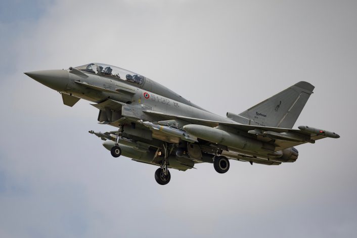 A detachment of the Italian Air Force with three Eurofighter Typhoons is currently deployed to RAF Marham in the UK, testing the Paveway IV dual mode laser and GPS/INS guided bombs.