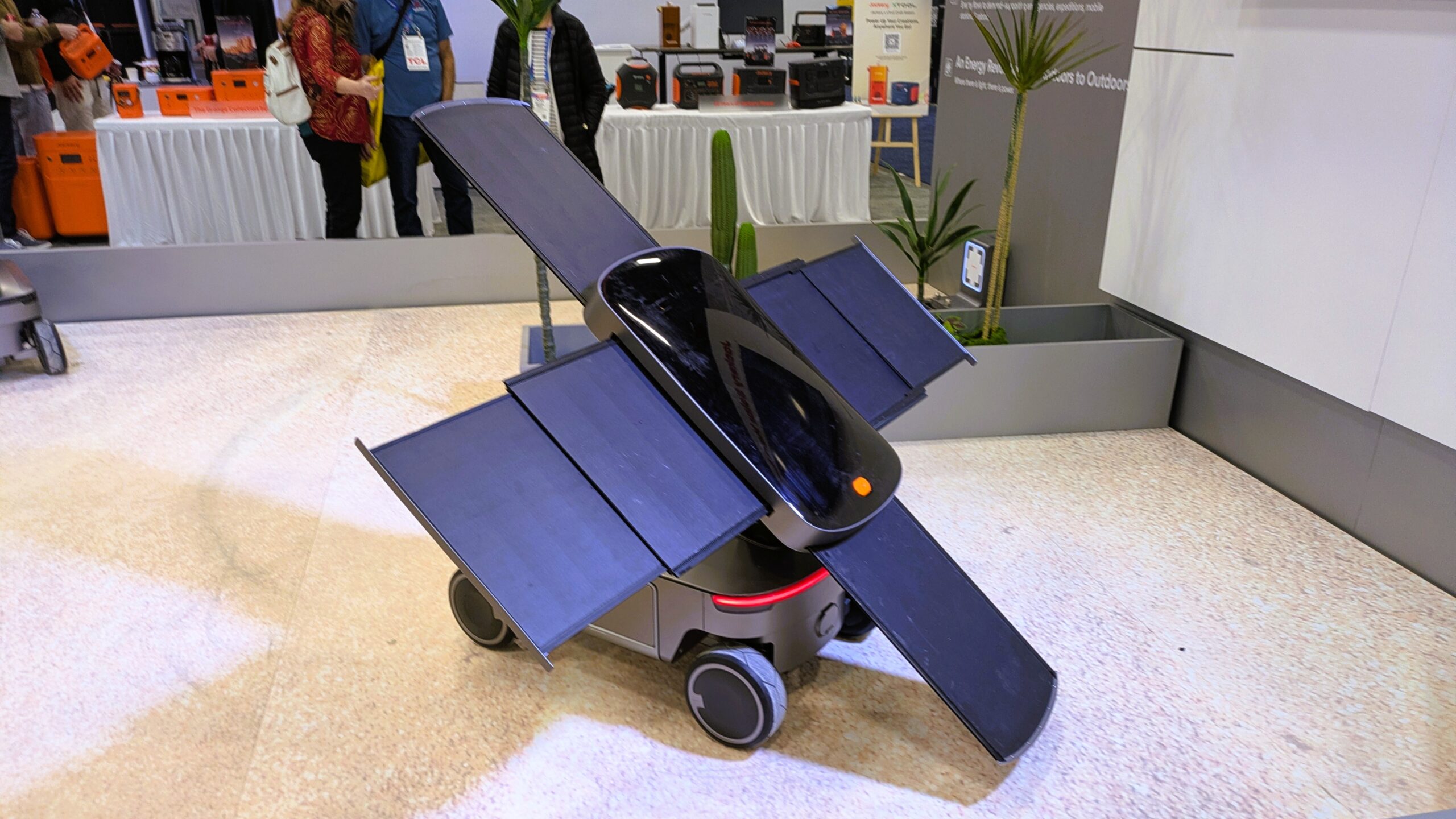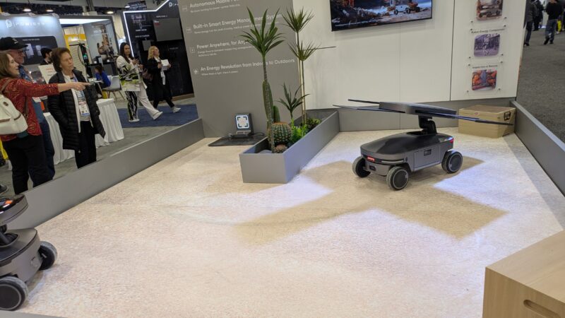 Also at the display was a “Solar Mars Bot” designed to take power where you need it. The 2 kWh of storage capacity per module and 1.5 kW output is useful, if not the largest portable battery. In addition, a retractable, tracking 300 W solar panel can be deployed to add power on the go. In addition, the energy storage is modular and detachable, letting the user add more power when needed.