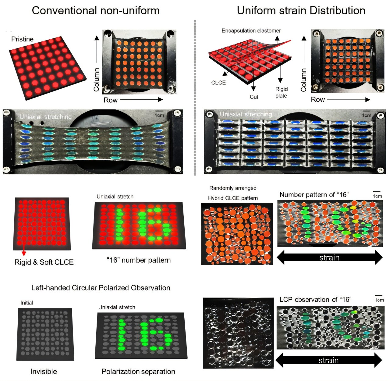 Professor Choi commented, “By addressing the challenge of non-uniform deformation, this work greatly enhances the practical potential of intrinsically stretchable materials such as silicone, rubber, and artificial skin. It will also contribute significantly to the development of stretchable optical components and secure display technologies.”