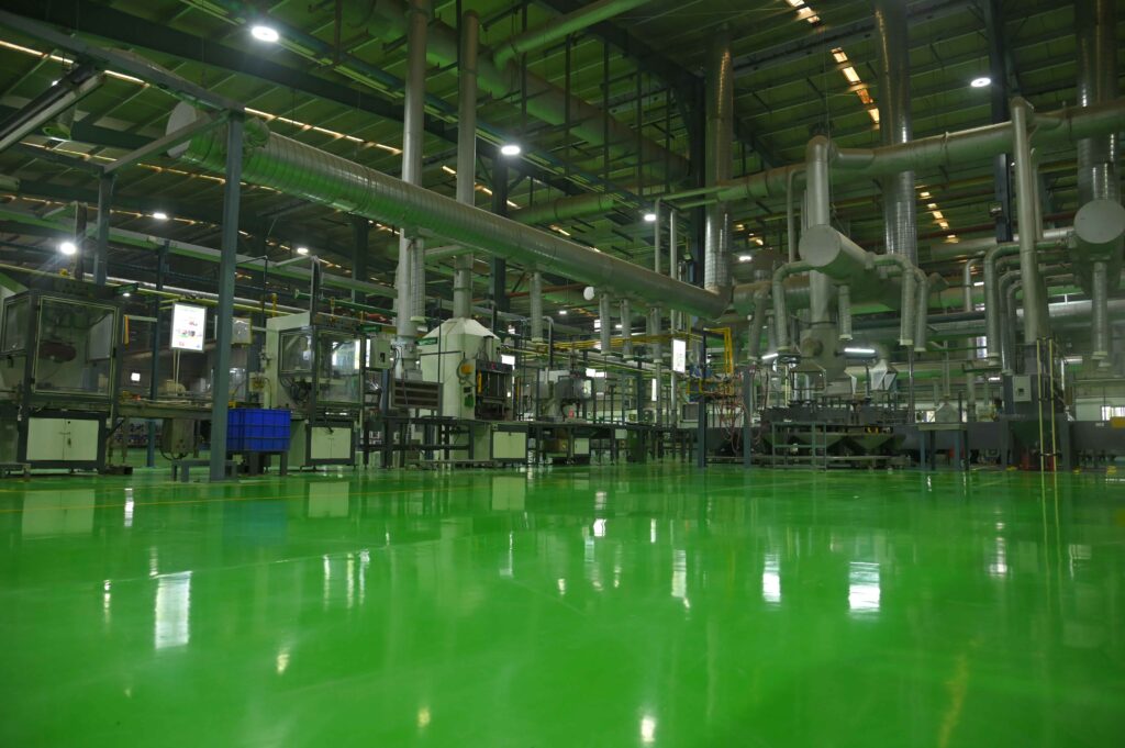 process for Industrial Battery. Additionally, the plant has an acid circulation system and an automatic battery assembly line with 2X speed than conventional assembly lines. This cutting edge technology is water-efficient and delivers high-speed battery charging method. The facility features a smart factory interface with live finished goods stock monitoring, sim area, digital dashboards to show real-time production information, and an innovative learning center called DOJO to enhance learning for all levels of employees.