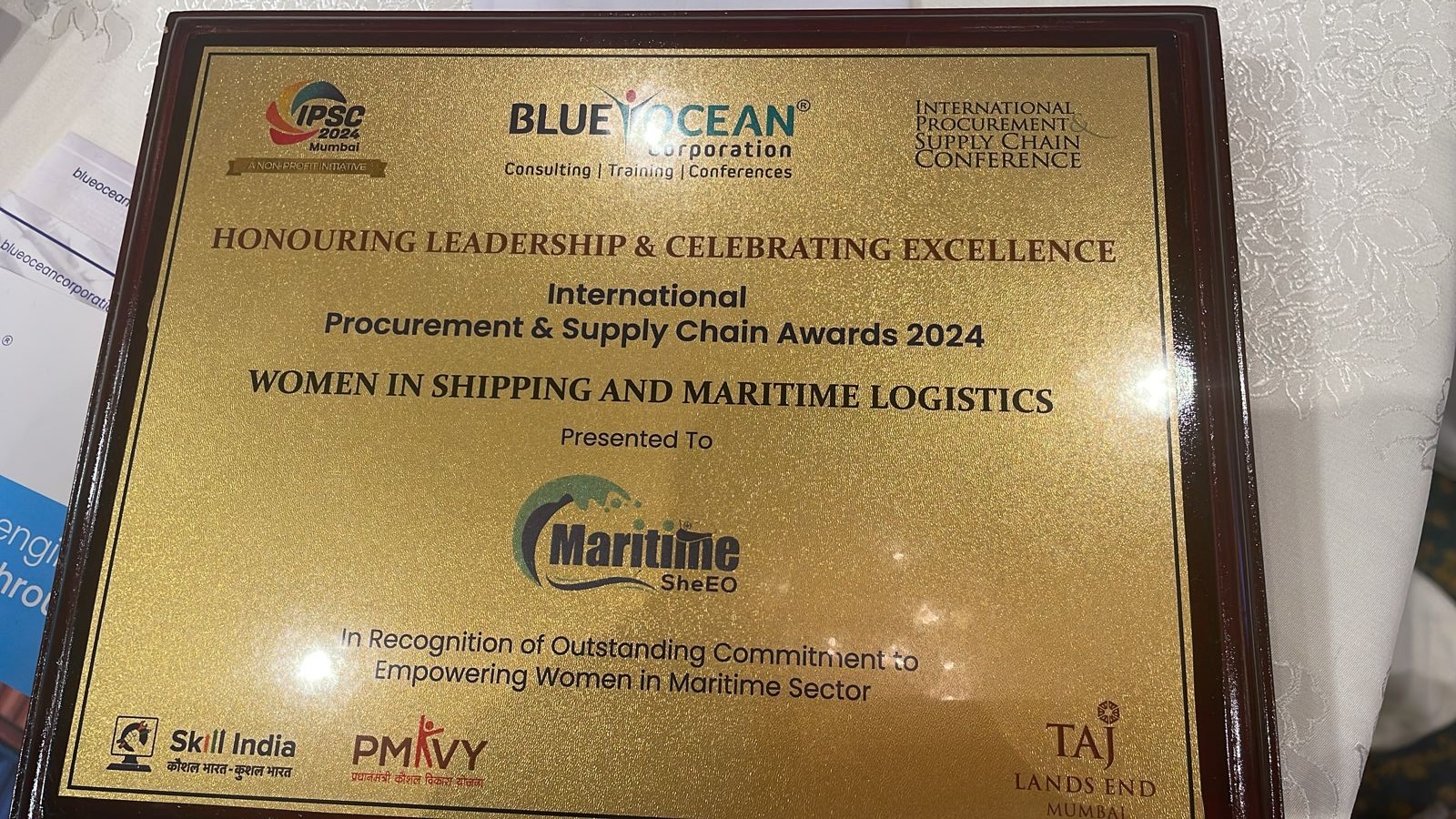MUMBAI : Maritime SheEO is proud to announce its victory in the “Women in Shipping and Maritime Logistics” category at the International Procurement and Supply Chain Awards 2024 in Mumbai.