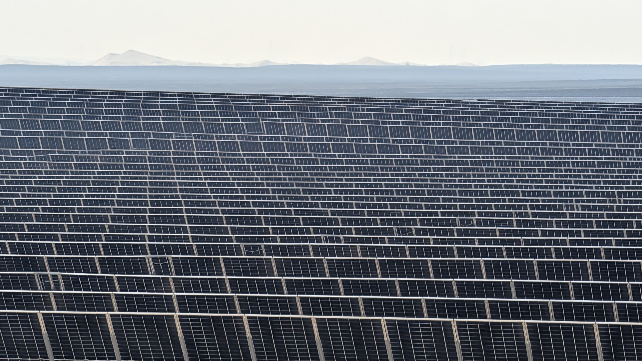 Rows of solar panels at the Al Dhafra Solar Site extend outward from the grid connection for miles in all directions. Image credit: Kyle Field, CleanTechnica