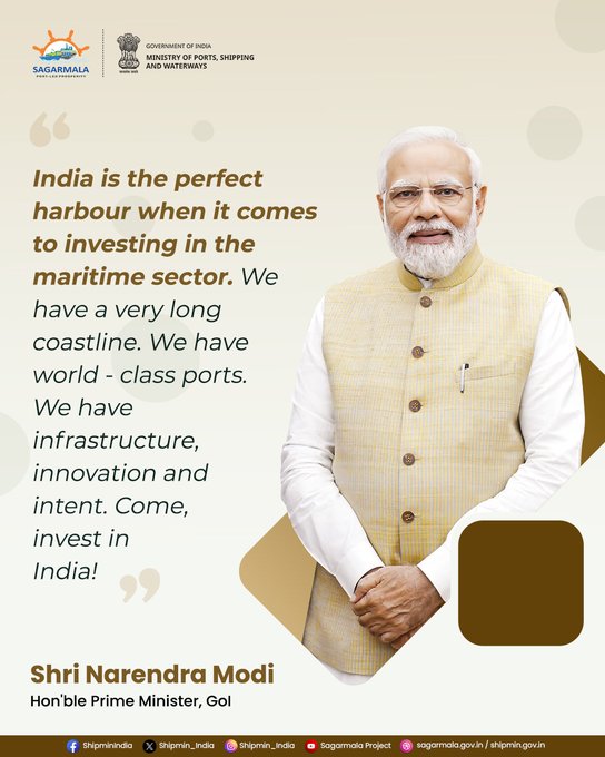 “India is the perfect harbour when it comes to investing in the maritime sector. With a vast coastline, world-class ports, and a strong foundation of infrastructure, innovation and intent India stands ready to lead the global maritime future. Come, invest in India,” PM Modi said.