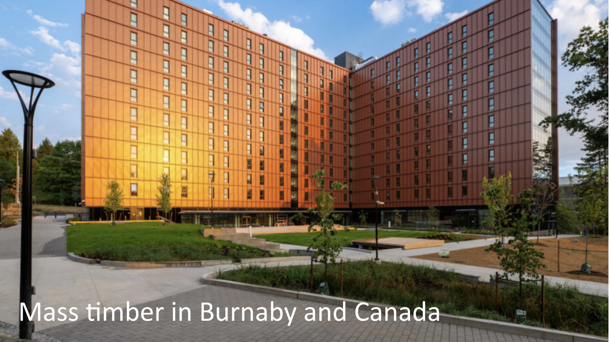 About 10 km from where I’m sitting, there’s a brand-new student residence at BCIT. It’s 12 stories, 500 beds, and it’s mass timber. Mass timber, for those who don’t know, is basically plywood on steroids. You can make structural beams, floors, and walls with it, and it goes together like Lego.