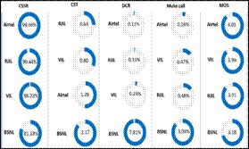 CSSR: Call Setup Success Rate (in %), CST: Call Setup Time (in milli seconds), DCR: Drop Call Rate (in %) & MOS: Mean Opinion Score.