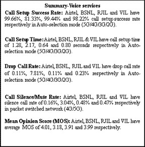 Call Setup Success Rate – Airtel, BSNL, RJIL and VIL have 99.66%, 81.33%, 99.44% and 98.22% call setup success rate respectively in Auto-selection mode (5G/4G/3G/2G).