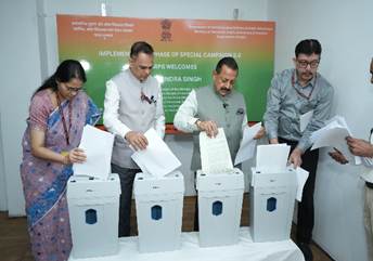 A ministerial review of the Special Campaign was conducted in DARPG on 07th October, 2025. Dr. Jitendra Singh, Minister of State (Personnel, Public Grievances and Pensions) along with Shri V. Srinivas, Secretary (DARPG & DoPPW) and Senior Officers of DARPG inspected the office premises, reviewed the e-waste materials for disposal and participated in shredding of obsolete files & records.