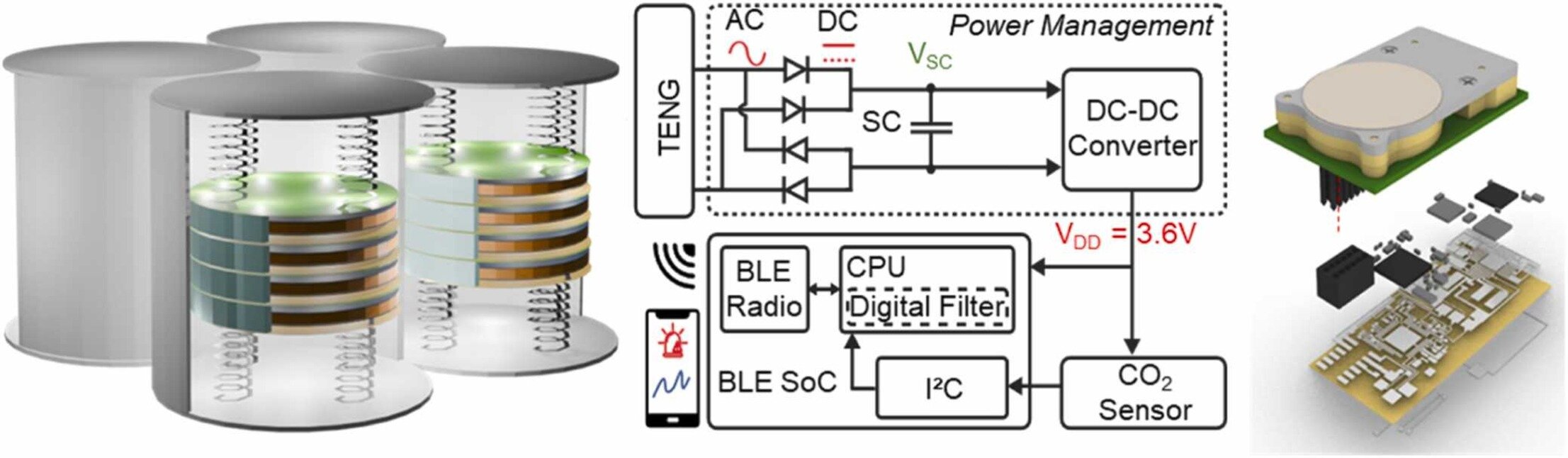 A research team has developed a self-powered wireless carbon dioxide (CO2) monitoring system. This innovative system harvests minute vibrational energy from its surroundings to periodically measure CO2 concentrations.