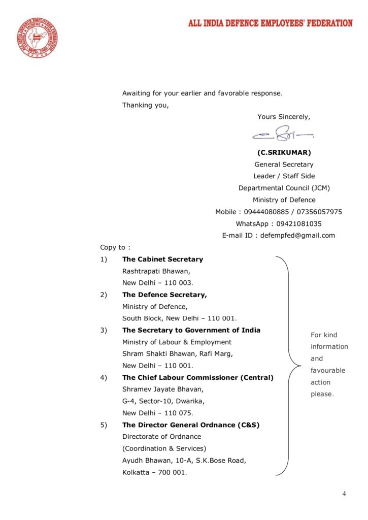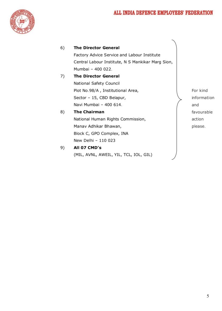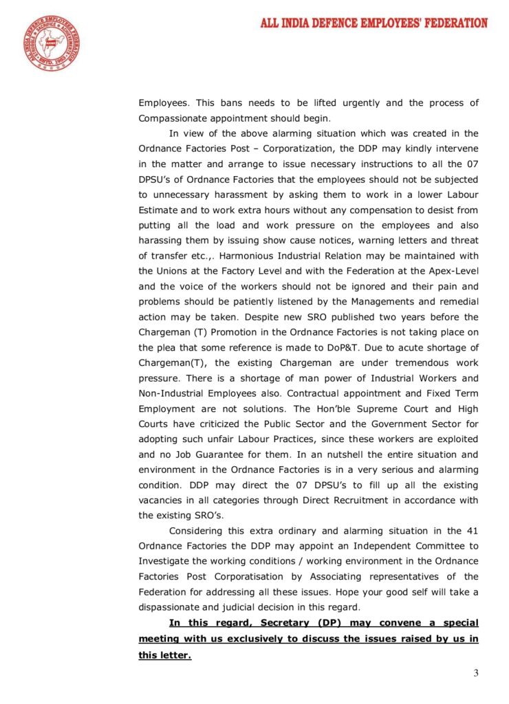 The letter written by the AIDEF to Secretary (Defence Production) is reproduced below for the benefit of the viewers of www.indianpsu.com