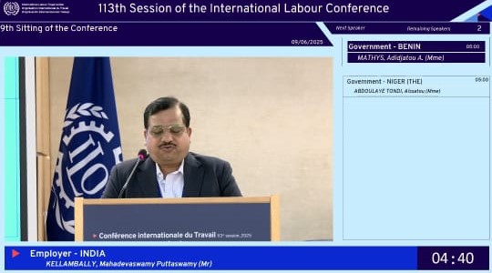 Shri K.P. Mahadevaswamy, Chairman and Managing Director, NBCC (India) Ltd., addressed the International Labour Conference Plenary Session at the International Labour Organization, Geneva, as the Indian Employer Delegate on 9.06.2025.
