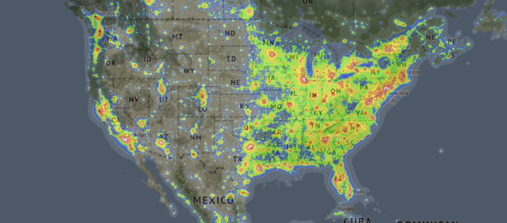 Featured image from LightPollutionMap.info.