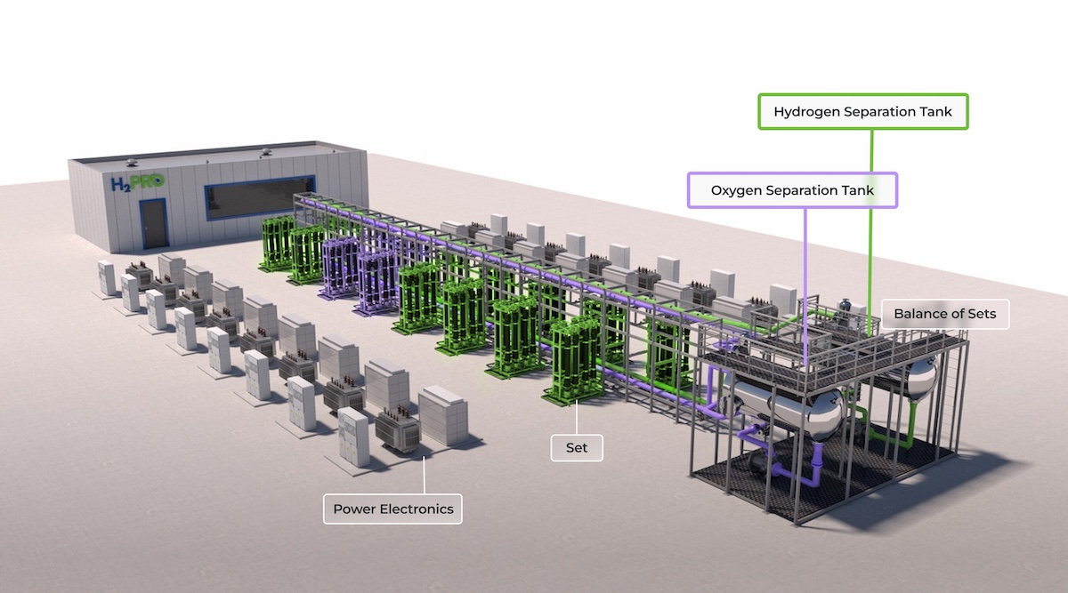 The project’s contribution to the green hydrogen industry is H2Pro’s unique electrolyzer system, purpose-built to run on solar power while avoiding the expense incurred by conventional electrolyszrs. “The core issue is that conventional electrolyzers were not built to consume cheap renewable electricity. These systems were designed for steady baseload power, not volatility,” H2Pro and Doral explain.