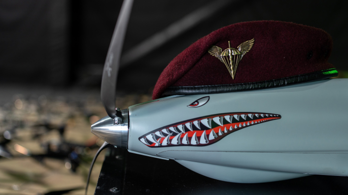 Ukrainian Mini-Shark drone topped with a beret of the Air Assault Forces. (Image credit: Ukrspecsystems)