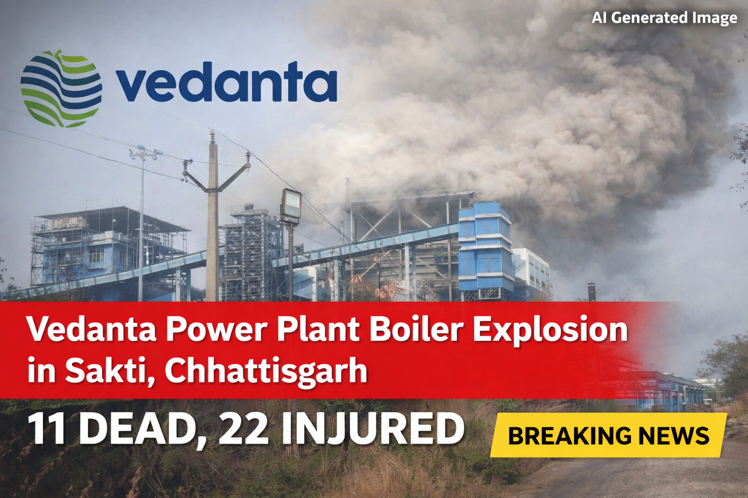A major industrial tragedy struck Sakti district on Tuesday after a boiler explosion at a Vedanta Power Plant in Singhitari village claimed at least 11 lives and left 22 others injured, triggering panic across the facility.