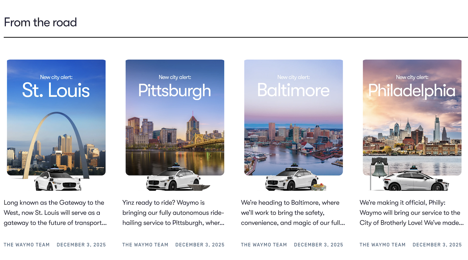 Regarding Philly, Waymo announced the news with the following: