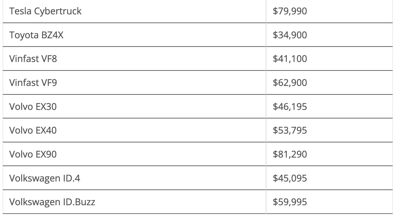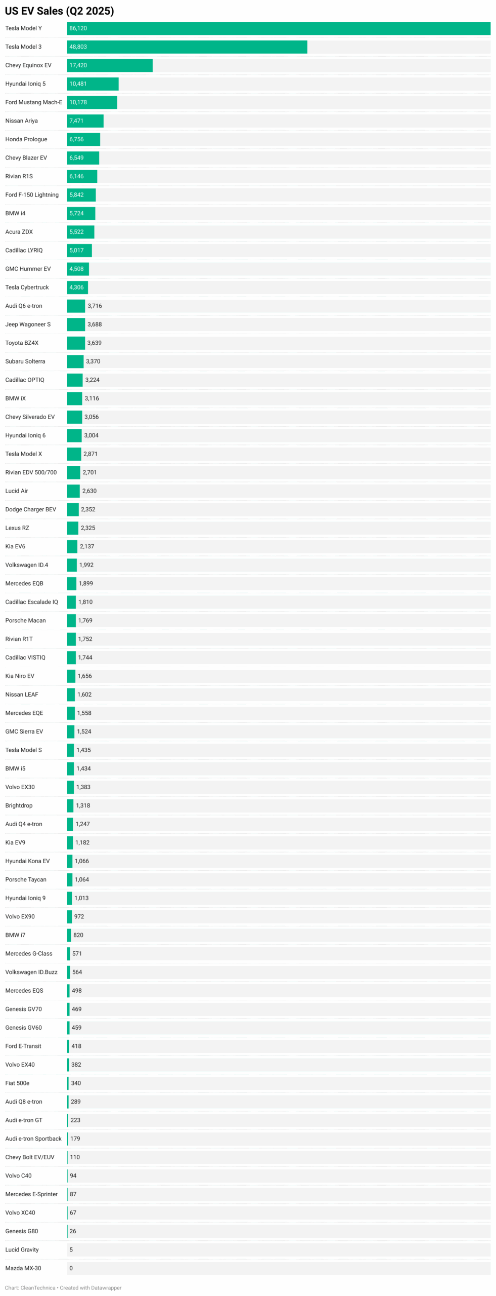 That excludes many of the models above, but there are also many models that do qualify, including from Acura, Audi, BMW, Cadillac, Chevrolet, Ford, Hyundai, Jaguar, Jeep, Kia, Lexus, Mercedes, Nissan, Subaru, Tesla, Toyota, Vinfast, Volvo, and Volkswagen. Which of these brands do you think is most likely to benefit from a surge in buyers coming in and buying their EVs in the 3rd quarter? For some background, here were 2nd quarter sales by model: