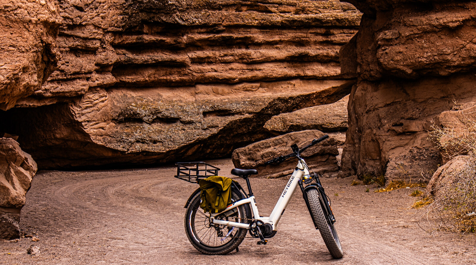 Featured image: an e-bike in a sandstone canyon. Photograph by Jennifer Sensiba.
