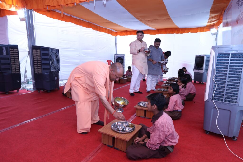 In a heartwarming gesture, the Chief Minister personally served mid-day meals to children, encouraging them with the message: “Roj School Aana” (Come to school every day).
